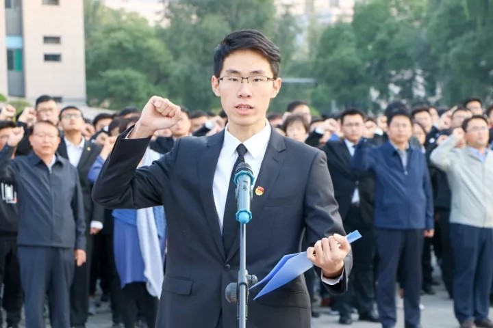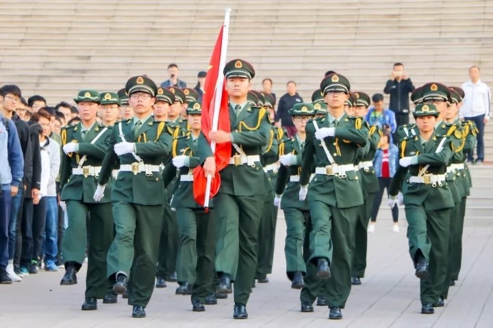 在全体师生的注目礼下,英姿飒爽的国旗护卫队队员们护送鲜艳的五星红旗进场,行礼完毕,伴随着庄严的《中华人民共和国国歌》,五星红旗冉冉升起,迎风飘扬。在场的每一个人向国旗行注目礼,深怀对祖国无限的热爱和崇高的敬意。之后,全体师生静默颔首、低头默哀,深切悼念和缅怀逝去的革命先烈。默哀结束后,全体师生面向国旗,在我校学生会主席杨瑞鹏的带领下紧握双拳,庄严宣誓,立志为实现中华民族伟大复兴的中国梦而努力奋斗。