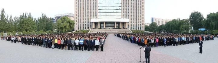 领导、教师代表、专职团干、辅导员、学生党员、学生干部,2017级新生等千余人参与升旗仪式。本次活动由校党委副书记薛智主持。