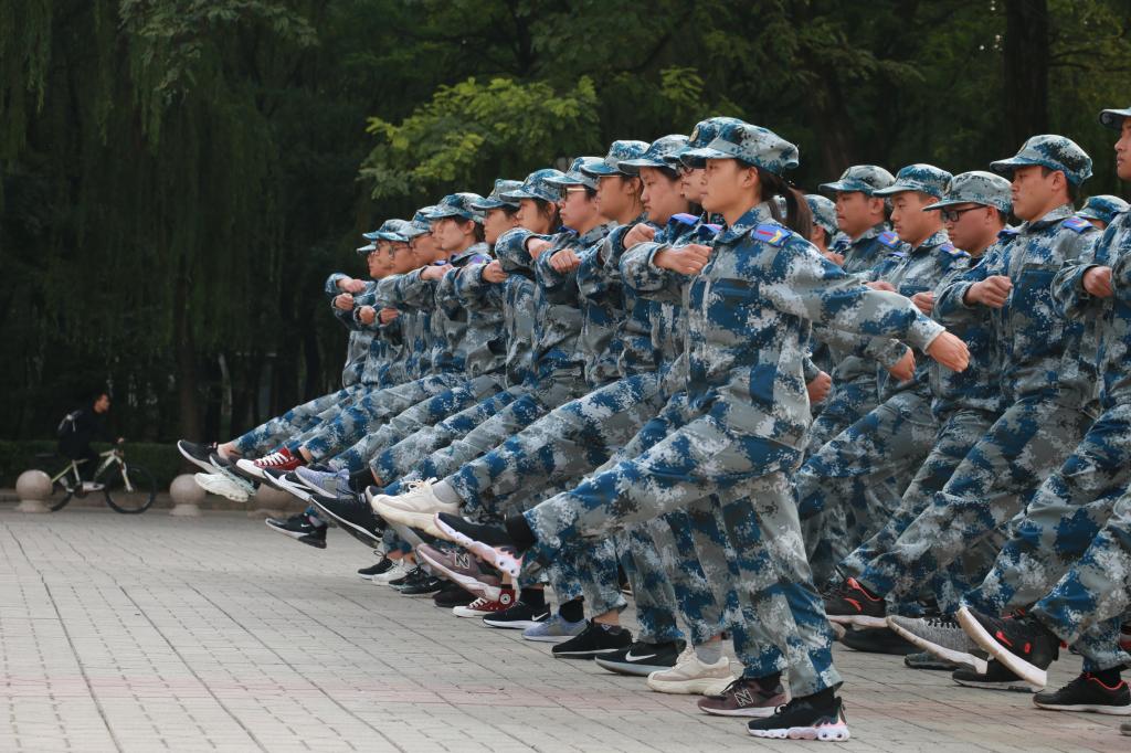 他们的目光炯炯有神,他们的精神饱满展现积极向上的活力。他们的脚,踏得比平时更用劲,更用心,比训练时更加坚定。尤其是走正步时,整齐划一的步调比任何声音都更能形成凝聚力,铿锵有力的步伐体现的是军人那排山倒海的气势和所向披靡的气概