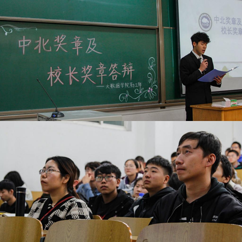 校长奖章答辩有3人参加,在主持人介绍了答辩要求和规则后,参加答辩的同学开始了自我展示与现场答辩。每个同学在有规定的时间内分别从学习情况,竞赛活动,创新创业等各个方面展示了自己最出色的一面。整个答辩过程中答辩人员激情澎湃,博得了在座老师与同学的阵阵掌声。