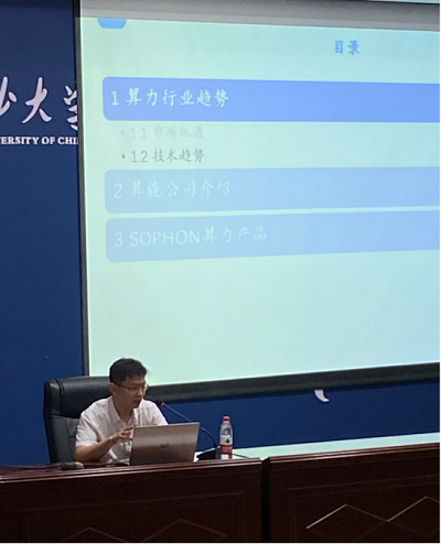 高鹏副总裁以《算能AI和CPU算力平台建设成果》为主题,向大家介绍了人工智能产业的挑战和问题,同时为大家详细介绍了当前ChatGPT快速渗透,AI产业迎来爆发式发展机遇的巨大应用潜力和科学前景。张晨鹂的《激发开源创新活力、培养AI实践人才》与在座师生分享了人工智能开源平台建设及课程实施内容,介绍了算能创新竞赛和获奖案例,为学生能力提升和学习实践思路提供了帮助。两位嘉宾的精彩报告深入浅出、风趣幽默,使与会的老师和同学们对人工智能项目实践及产业发展有了更加深入的认识,并希望以此引领对人工智能云边端协同感兴趣的同学投身到此领域的学习和研究中来。