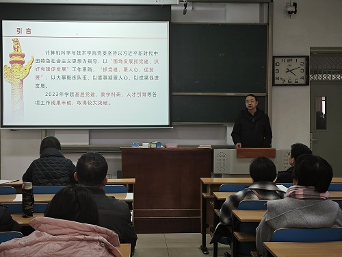 喻华兵书记首先给大家送上新年的祝福!新年进新人,接下来,太阳城集团2024年新入职的两位教师作了自我介绍,新教师的加入也开启了太阳城集团2024年人才引进的新篇章。接着喻华兵书记从学科实力不断提升、科研工作稳中有升、人才引育效果突出、教学成绩斐然和学科竞赛成果丰硕等方面总结回顾了太阳城集团2023年工作取得的主要成绩,同时也指出了我们存在的不足和今后努力的方向。