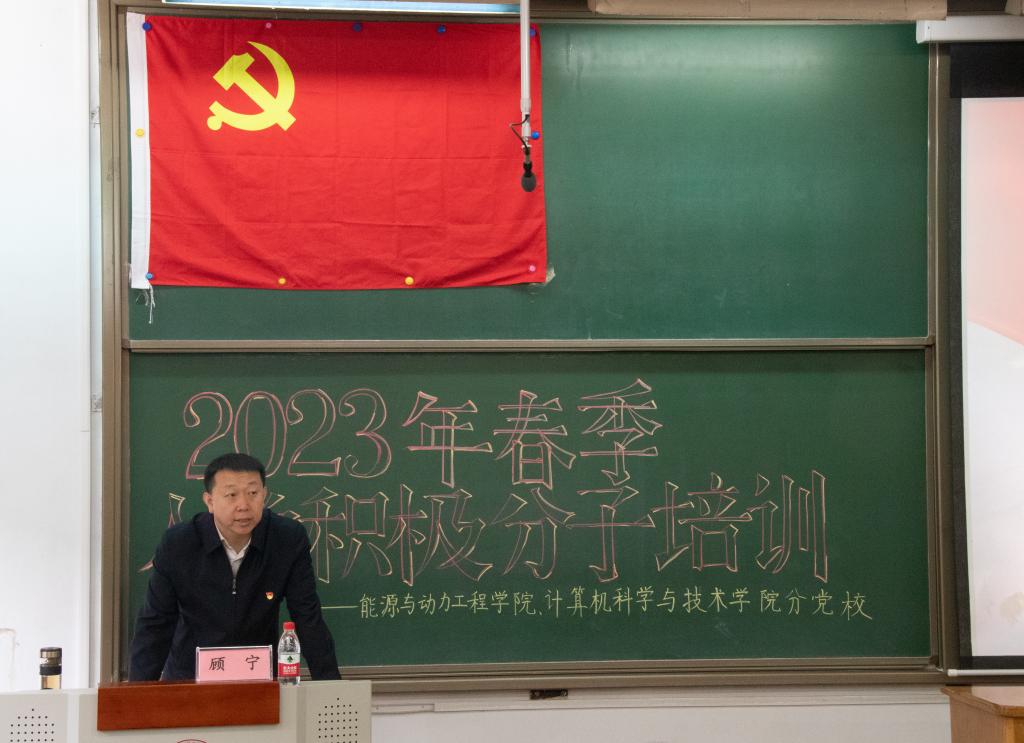 党委书记顾宁为学员们讲解《学党史不忘来时路,跟党走奋进新征程》,他为学员们讲述中共一大到中共二十大之间的每个重要会议,详细讲解了每次会议的重要内容和历史意义。