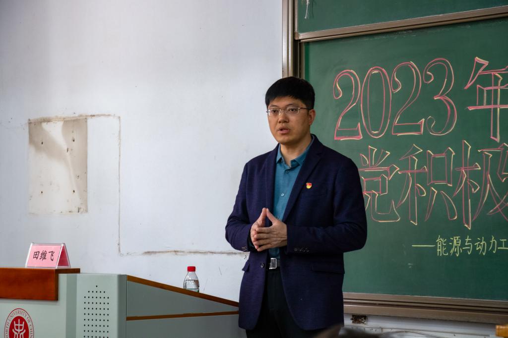 党委副书记田维飞以《端正入党动机,争做新时代合格党员》为题,深入讲解关于入党动机的一系列问题,包括入党动机的表现类型、端正入党动机的重要性以及如何端正入党动机,激励学员们以实际行动争取早日加入党组织。