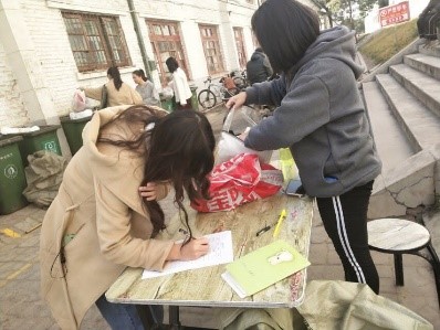 10月26日早上9点,太阳城集团青志部在文瀛五,文瀛十,文瀛十三楼下设置了衣物回收点,并安排了志愿者进行登记整理。在活动期间时常有热心的同学前来询问详情,了解情况后,他们便积极地将洗净的叠放整齐的衣物亲自送到了捐衣点。让我们看到了同学乐于助人,勇于奉献的热情和爱心。