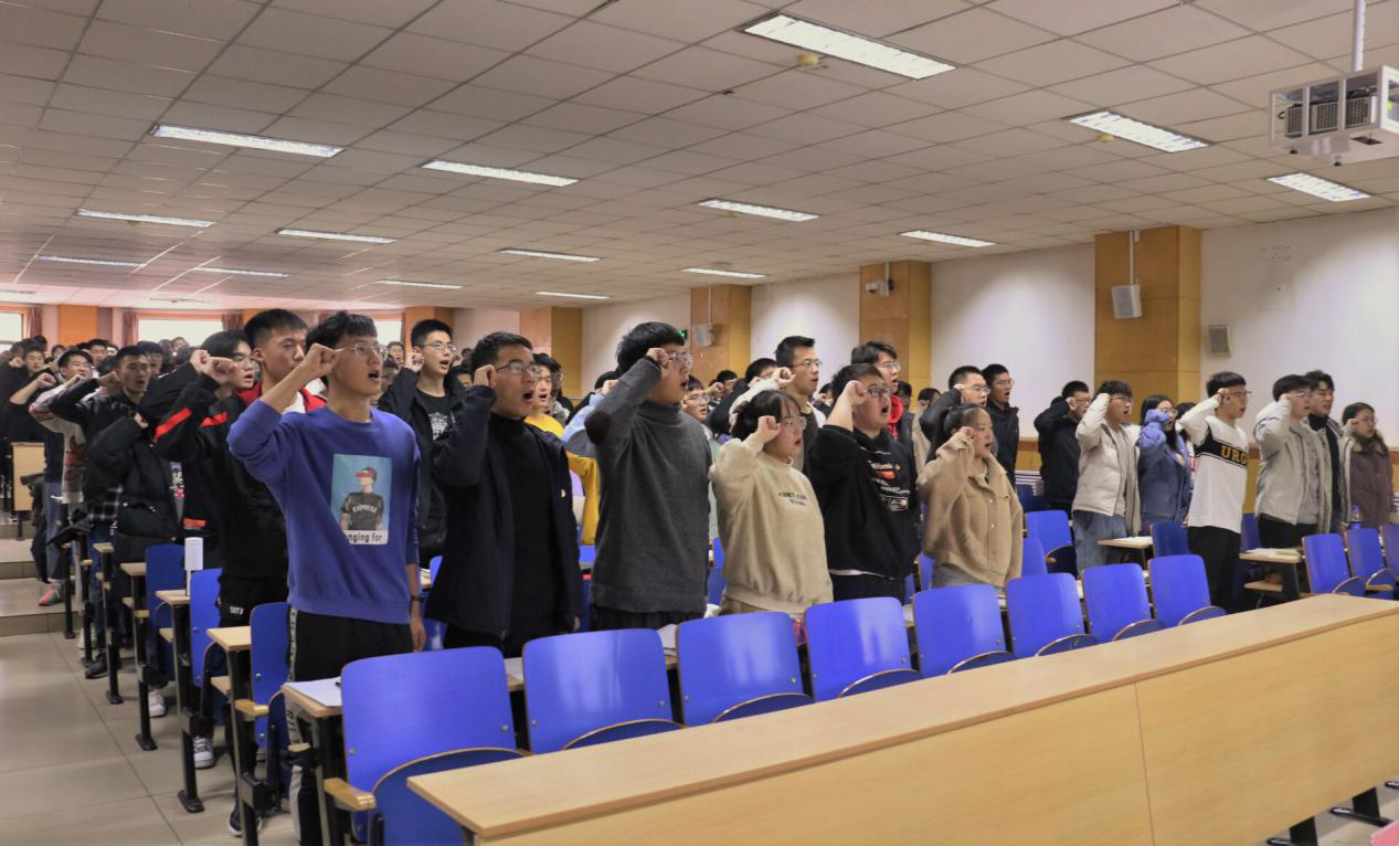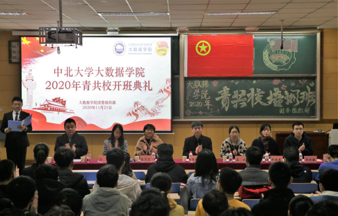 团委于2020年11月21日在09302H成功举办了青年共产主义培训学校开班典礼及课程培训。莅临本次活动的嘉宾有:院党委副书记杨晓东老师、院团委周宇宏老师、院党委组织员许颜杰老师、学生科孟姣老师、卫星老师、乔方毅和王盼老师。大一全体班委、大二团干、学生会主席团及各部门学生骨干共计二百余人参加了此次培训。