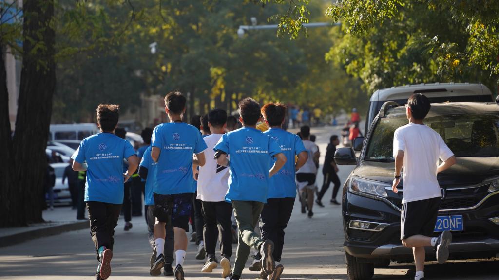 “中北加油!山西加油!中国加油!”比赛前,现场发出的呐喊声将参赛选手的热情瞬间点燃。热身教练带领全体参赛运动员做热身运动,活动了身体、舒展了筋骨,为之后的奋力追赶做足了准备。
