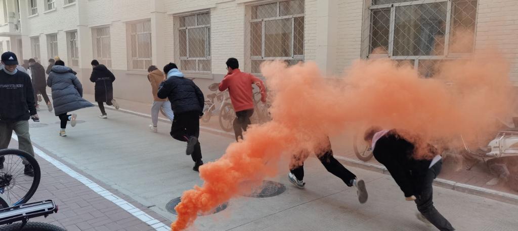举办一次实战的全员消防演练,全体21级同学和学生科老师出席活动。