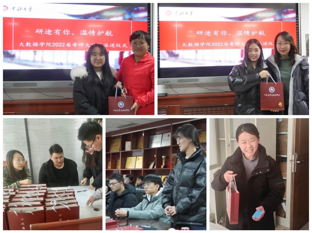 在11919H举办了“研途有你、温情护航”的考研学生座谈会暨大礼包派送启动仪式。院党委书记郭书杰、副书记杨晓东、副院长况立群、全体辅导员和毕业生班主任以及各班考研学生代表参加了派送活动。