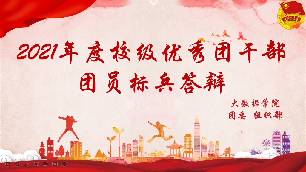 答辩开始后,答辩人员按照抽签顺序通过PPT依次进行答辩。首先进行答辩的是校级优秀共青团干部标兵,刘阳、叶冬寒、王梓宇3位同学,他们分别分享了自己的工作经历、成长过程、收获感悟以及未来设想。
