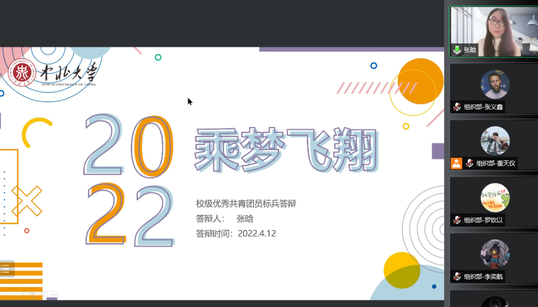 最后,经过个人申报、资格认定、材料审核以及线上答辩等环节,于2022年4月12日太阳城集团校级优秀共青团干部标兵、校级优秀共青团员标兵评选工作已结束。最终推荐叶冬寒等2位同学申报校级优秀共青团干部标兵,张晗等3名同学申报校级优秀共青团员标兵。