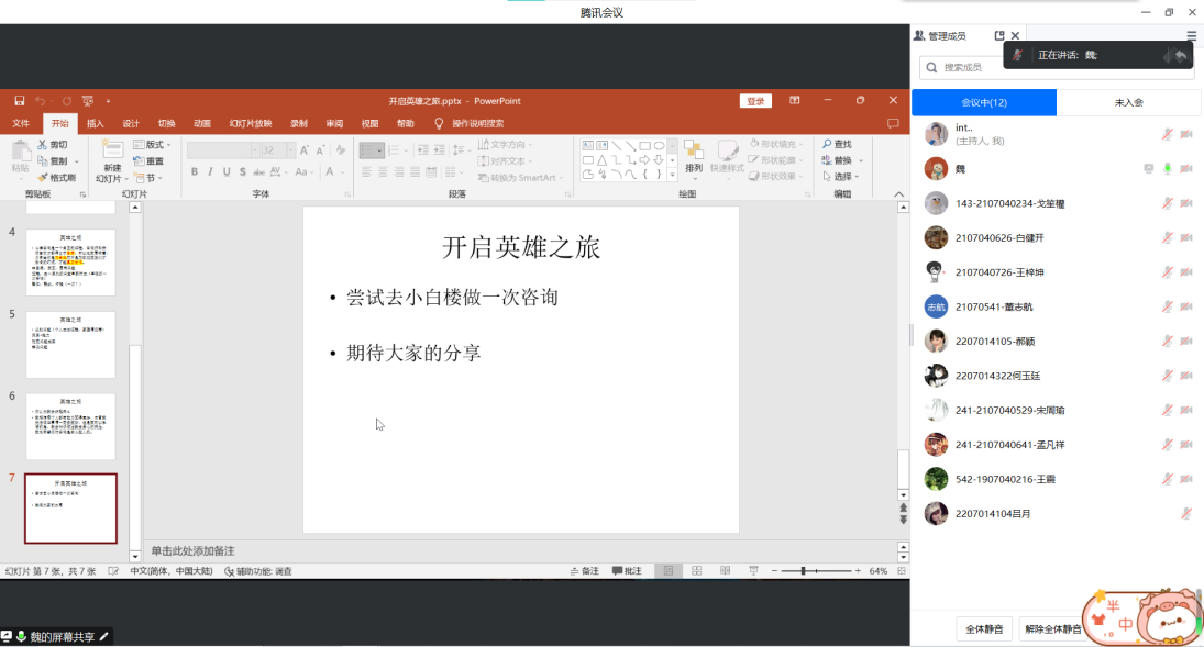 魏春燕老师、报名的12位同学以及心理站工作人员参加了此次分享会。魏老师以介绍“英雄”的含义引入主题,分享会正式开始。