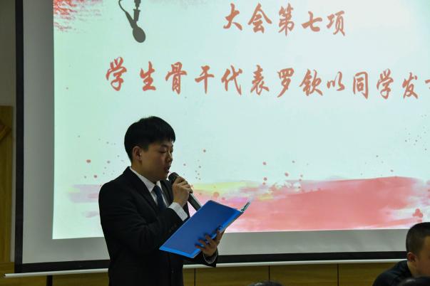本次换任大会在庄严的国歌声中拉开了序幕。院党委副书记杨晓东老师做培训动员讲话;学生科科长魏春燕老师宣读上一届学生骨干名单并为他们颁发聘书;上一届学生骨干代表罗钦以同学发言,叙述了自己做学生工作的经历以及对未来的展望;院团委老师周宇宏宣读本届学生骨干名单,本届学生骨干代表曲英杰同学发言;学生科王盼老师宣读考核标准及纪律要求;最后由院团委副书记吉彦蓉同学领誓,全体学员宣誓。