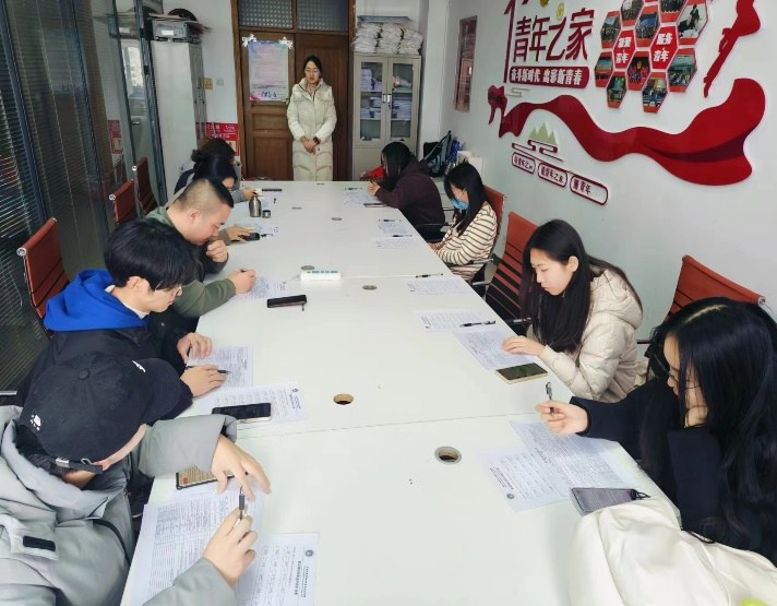 根据《团员发展工作实施細则》,开展了新发展团员评选工作。经过提交入团申请、入团积极分子确定,组织入团积极分子开展团课学习、考试等环节结束后,入团发展对象谈话评审会于2023年12月15日在主楼711进行。