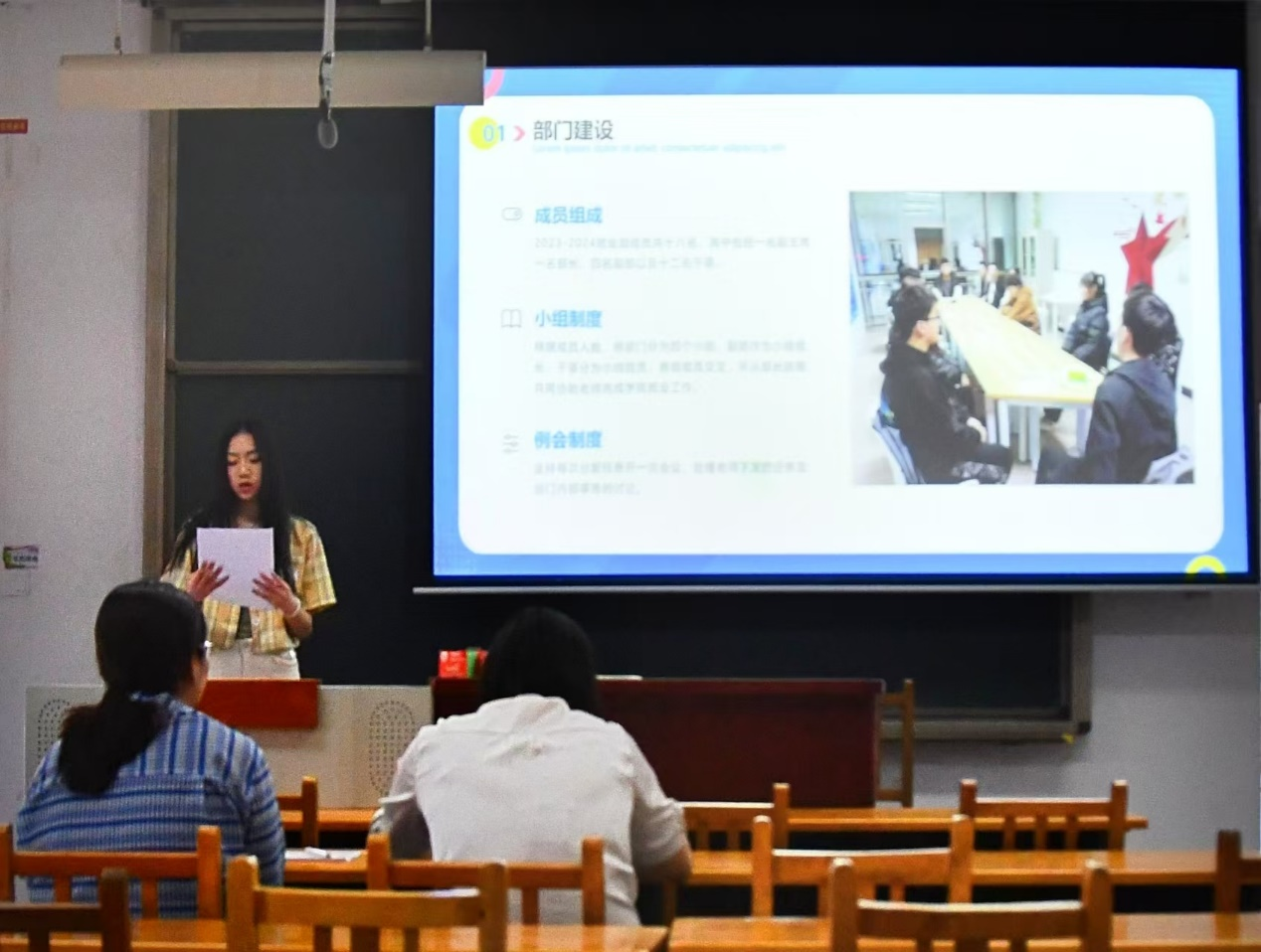 团委学生会学生骨干对一年的部门工作情况进行汇报总结答辩。莅临本次大会的老师有:团委周宇宏老师和团委副书记孟娇老师,由院老师和院第三届第一任团委学生会学生骨干担任评委。