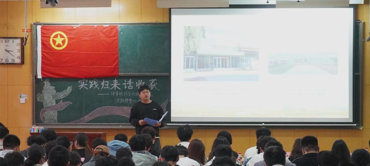 活动开始,同学们全体起立,奏唱团歌,实践归来话收获分享会也由此拉开帷幕。首先,实践部的成员刘润琦同学为我们介绍此次活动和大学生暑期社会实践的相关内容。