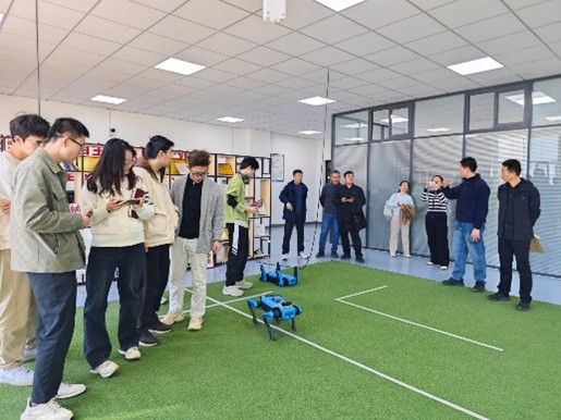 春意盎然,学术共融。 在这万物复苏的季节,实验室于2025年3月20日迎来了山西省实验中学的教师代表。他们带着对人工智能教育的热情,专程前来我校参观交流,共同探讨机器狗在教学中的应用与发展。