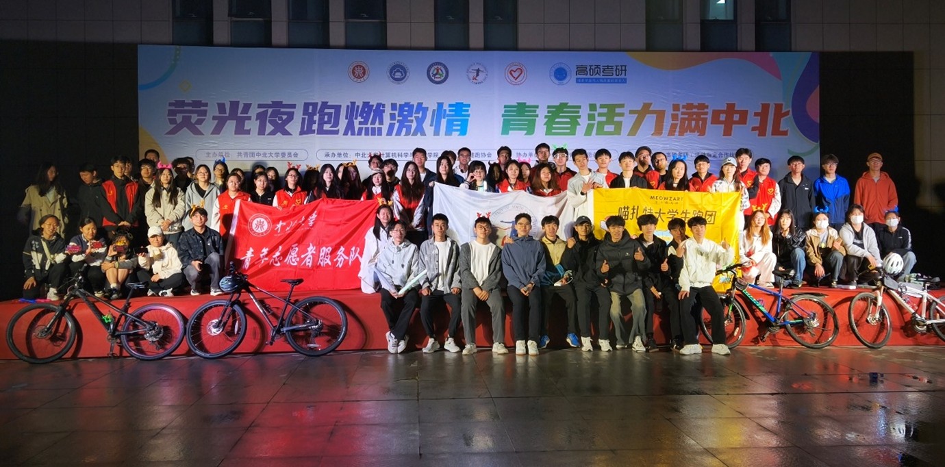 随着发令声响,千余名师生佩戴缤纷荧光装备,汇成一条璀璨流动的光河,涌向校园大道。点点荧光在夜色中跳跃闪烁,与路灯、星光交相辉映,勾勒出青春跃动的壮丽图景。跑道沿途的志愿者加油助威,光影交织间,欢声笑语与奋力奔跑的身影共同构成了中北校园最动人的夜景。